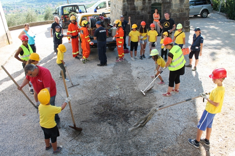 Continua Lucchi:"Quello che insegnamo a questi bambini è molto importante, ma non possiamo farli sedere intorno ad un tavolo e fare la lezioncina; hanno bisogno di vedere, toccare con mano e partecipare attivamente. Quindi forniamo loro tute, attrezzature, conoscenze, ed insceniamo delle simulazioni in cui possano intervenire. Insegnamo loro come riconscere aree d'ammassamento in cui radunare le persone in caso di terremoti, come spengere incendi, come segnalare e sventare eventuali pericoli".