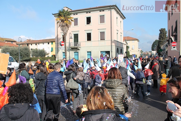 Una parata di bambini e insegnanti in festa ha sfilato questa mattina (giovedì 27 febbraio) per le strade del centro di Capannori.