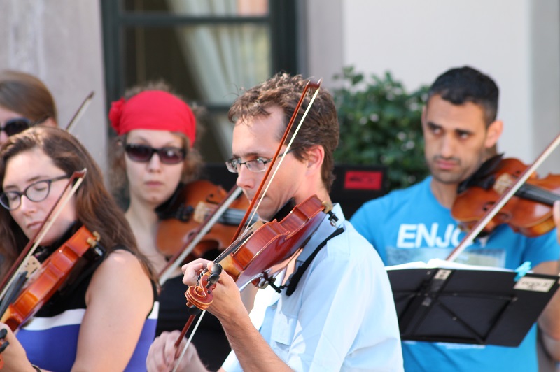 Sistemato il necessario, i giovani hano estratto i propri strumenti ed iniziato a suonare brani celebri sia di musica classica che colonne sonore, riscuotendo un discreto successo dai presenti (e anche qualche generosa offerta).