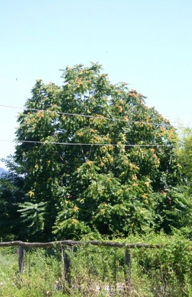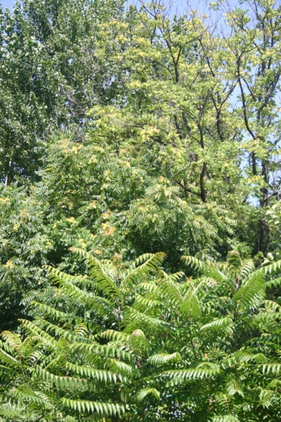 "Ha un nome assai suggestivo: Ailanthus Altissima. Ed è anche un albero gradevole con I fiori piumosi raggruppati in pannocchie gialle e rosse sparse nella chioma ampia, tanto è vero che molti l'accolgono volentieri e lo fanno crescere… incoscienti della sua invasività e proliferazione che avviene sia per per via aerea (con il trasporto dei semi ad opera del vento) che attraverso I numerosi getti emergenti dalle estese radici.