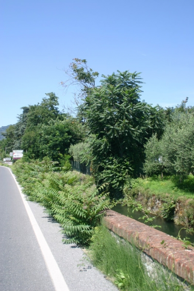 L'ailanto si è già impossessato dei terreni che fiancheggiano le ferrovie, i lati delle strade in ristrutturazione, i lungofiumi: ha poi colonizzato le pendici collinari disboscate, i riporti di terreno ...e perfino le siepi e i giardini privati. Ecco ad esempio alcune foto (a piè pagina)scattate in lucchesia nella zona compresa tra Ponte a Moriano e Marlia ove la situazione appare particolarmente virulenta.