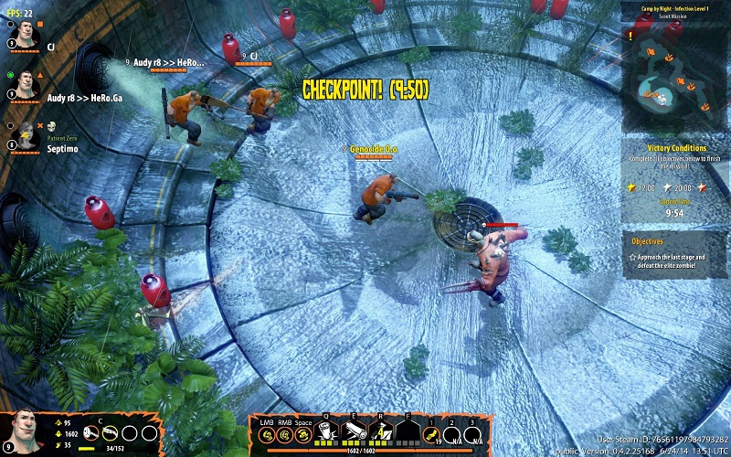 Partiamo dal sistema di gioco che prevede un progressivo abbandono dei CLICK sul mouse e un aumento dei tasti sulla tastiera, questa innovazione porta il giocatore a dover utilizzare molto di più il cervello prima di dover fare un azione continua, in pratica si sta parlando di un FPS con la visuale alla DIABLO (isometrica, NDR) e avremo a disposizione due attacchi sul mouse, quattro abilità da gestire con i tasti Q,E,R,F e il personaggio non si muoverà con i click del mouse ma come negli spara-tutto dovremmo usare W,A,S,D e, giustamente, la barra spaziatrice ci permetterà di saltare o fare capriole come in un FPS. Quindi siamo davanti ad una rivoluzione nel genere. Oltre a questo avremo la possibilità di usare attacchi da mischia e attacchi dalla distanza, con il tasto C si cambierà arma passando, ad esempio, dal remo di una barca ad un fucile a pompa che ci permetterà di allontanarci e salvarci la pelle da un orda di zombie piuttosto che star lì a prendere mazzate a tutto spiano. Rispetto ad altri videogame del genere siamo sicuramente di fronte ad un vero cambio che, se siete abituati a LOL o DOTA, vi sembrerà relativamente difficile all'inizio ma una volta fatta pratica risulterà molto meno macchinoso e più aperto rispetto ai titoli sopracitati.
